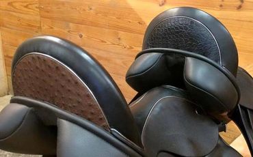 The Amadeo Dressage Saddle is the choice of riders who favor a more moderate depth of seat and twist with a generous seat bone position.